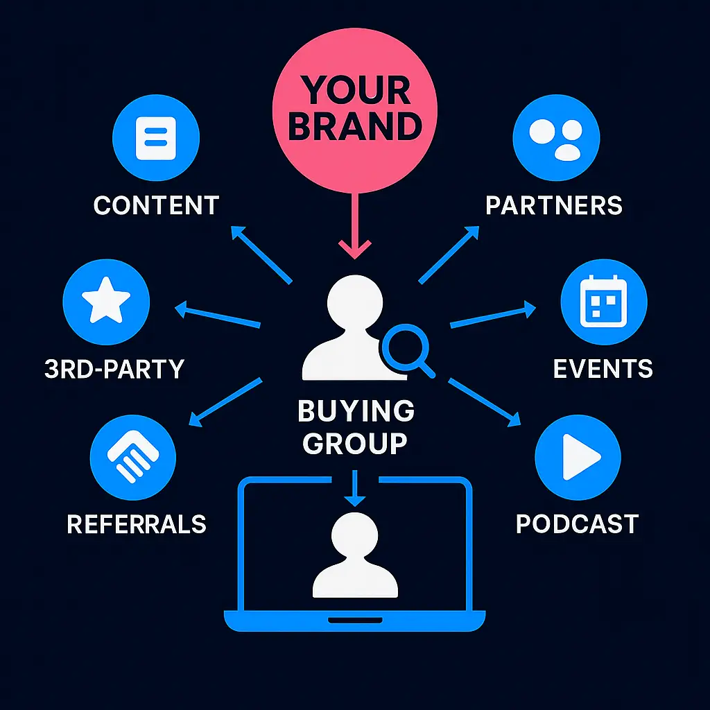 Surround Strategy helps you influence the buying group across multiple trusted touchpoints — through content, partnerships, and people they already listen to.